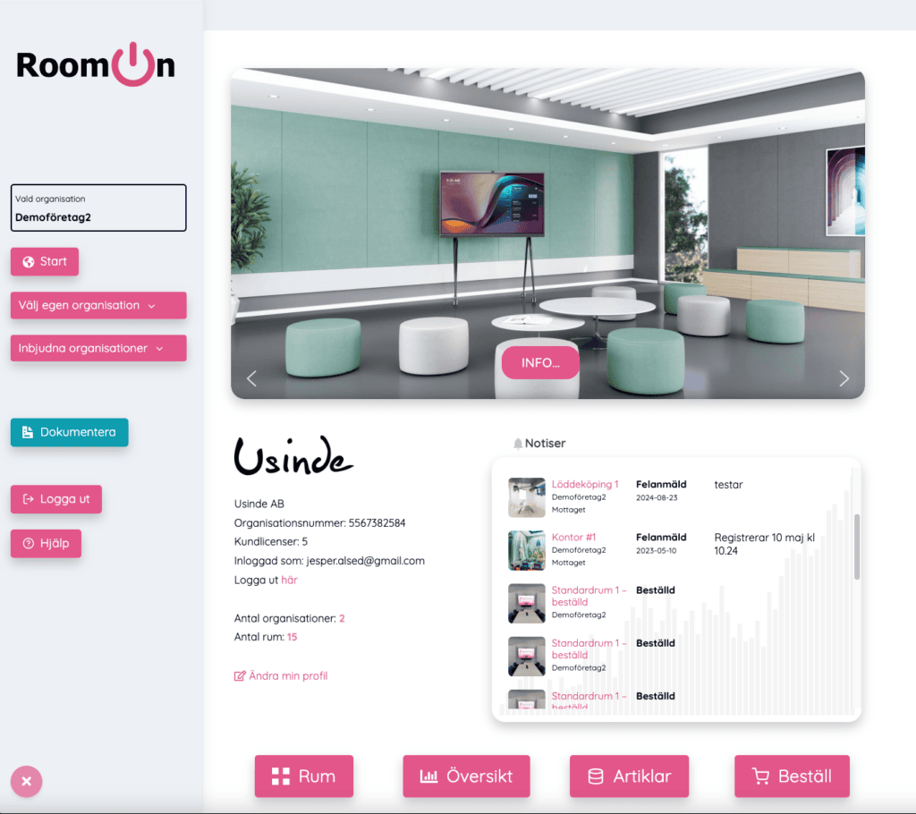 Vi fortsätter utveckla RoomOn till att bli det självklara valet av websystem för hantering av utrustning i rum.